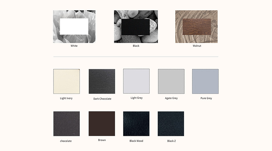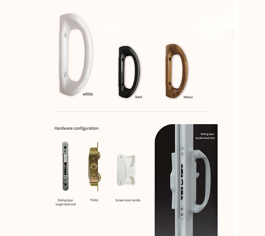 We offer door handles in three colors: black, white, and wood grain. You can choose any interior finish and pair it with a standard matching exterior finish.