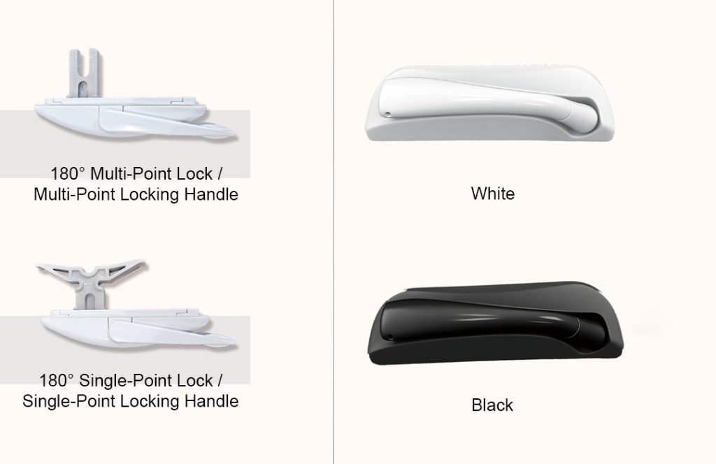 180° Multi-Point Lock / Multi-Point Locking Handle: For outward-opening cases, a multi-point locking system ensures good airtightness and wind pressure resistance when the window sash is closed.