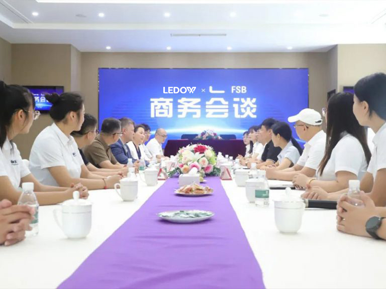 Accompanied by Ledow’s CEO, Mr. Zheng Haifeng, Mr. Ulrich Franke, head of international sales field service of FSB in Germany visited the exhibition hall and production workshop on August 1, 2023.